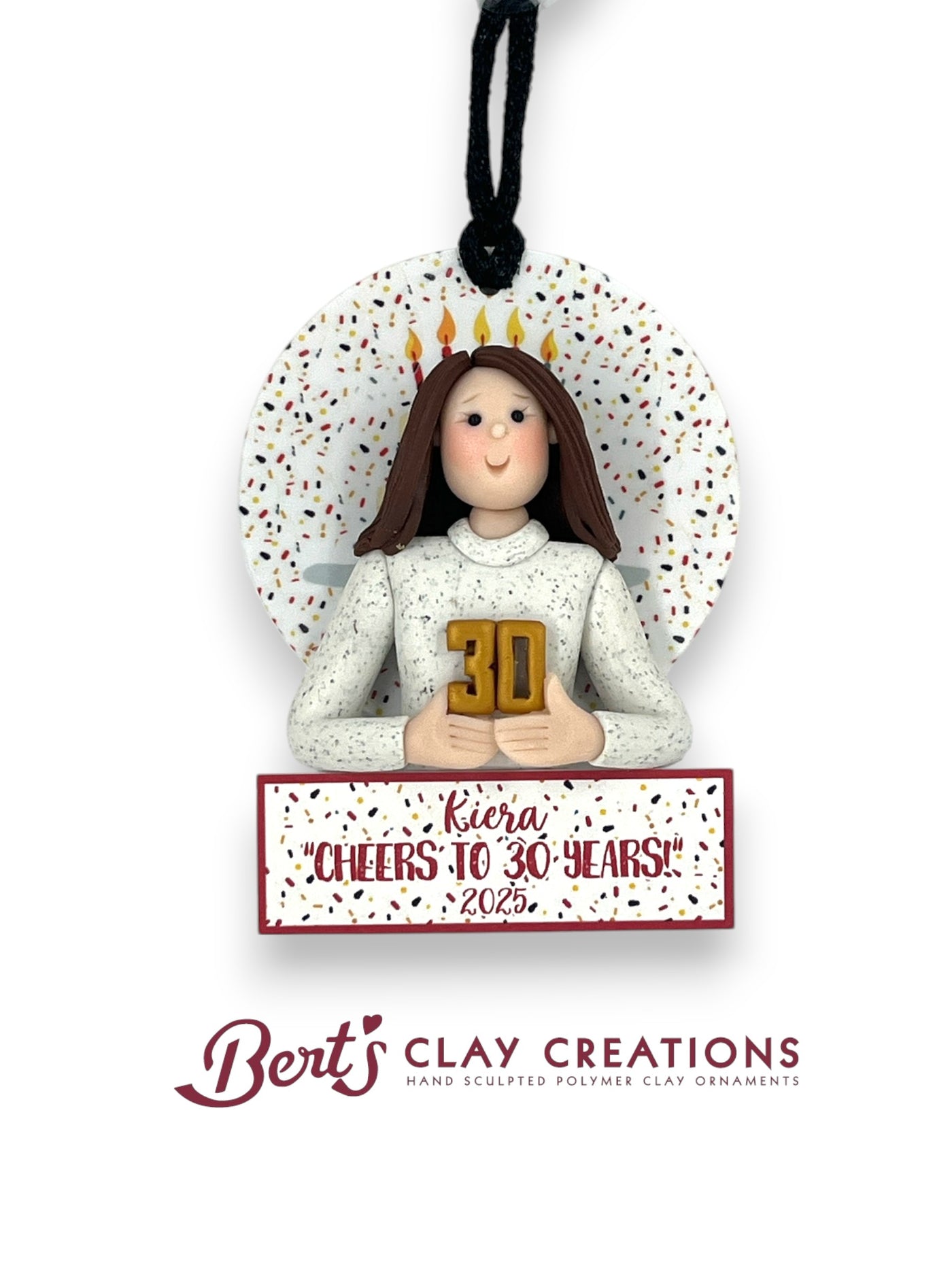 "Perk up your day with Bert's Clay Creations! This handcrafted polymer clay ornament features a cheerful barista, ready to serve up your favorite brew with a smile. Customize details like hair color, apron, and coffee cup for a unique touch. The perfect gift for coffee lovers, café owners, or the hardworking barista in your life!"