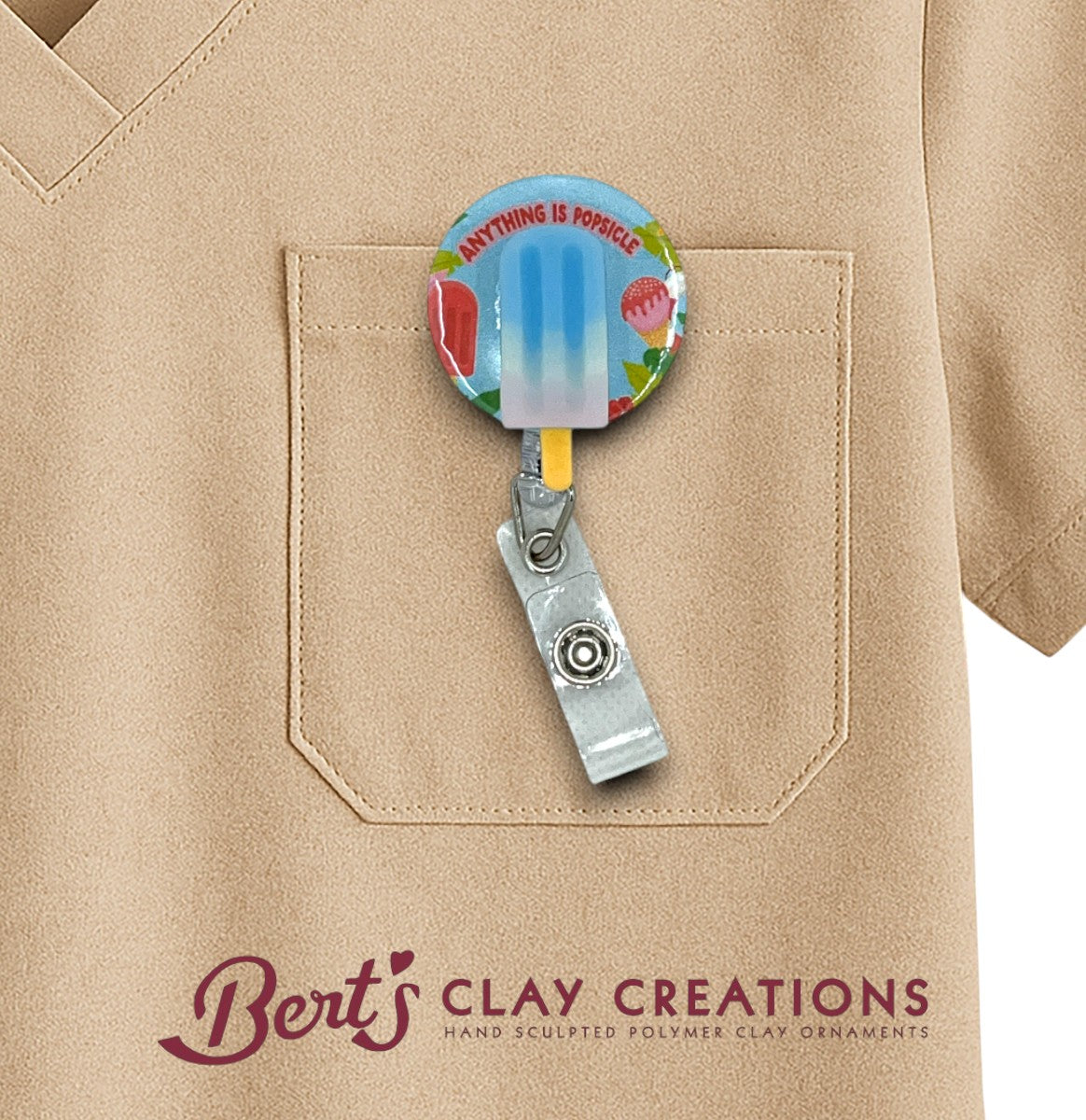 "Add a sprinkle of sweetness to your day with Bert's Clay Creations 'Bake the World a Better Place' badge reel topper! Perfect for baking enthusiasts and professionals alike, this charming accessory serves up equal parts humor and style. A delightful way to show off your love for all things baked and beautiful!" 🍪 Interchangeable topper - Attach...