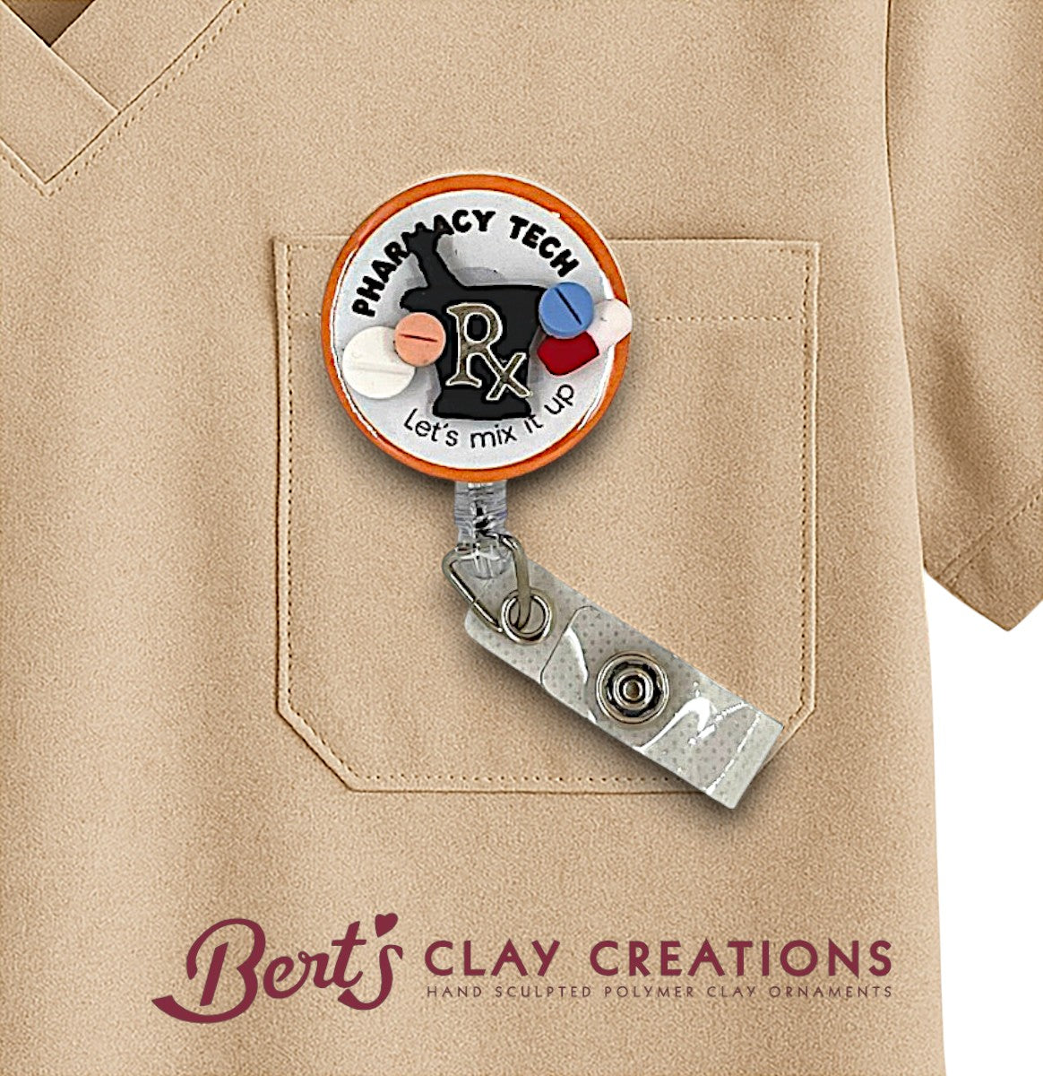 "Add a sprinkle of sweetness to your day with Bert's Clay Creations 'Bake the World a Better Place' badge reel topper! Perfect for baking enthusiasts and professionals alike, this charming accessory serves up equal parts humor and style. A delightful way to show off your love for all things baked and beautiful!" 🍪 Interchangeable topper - Attach...