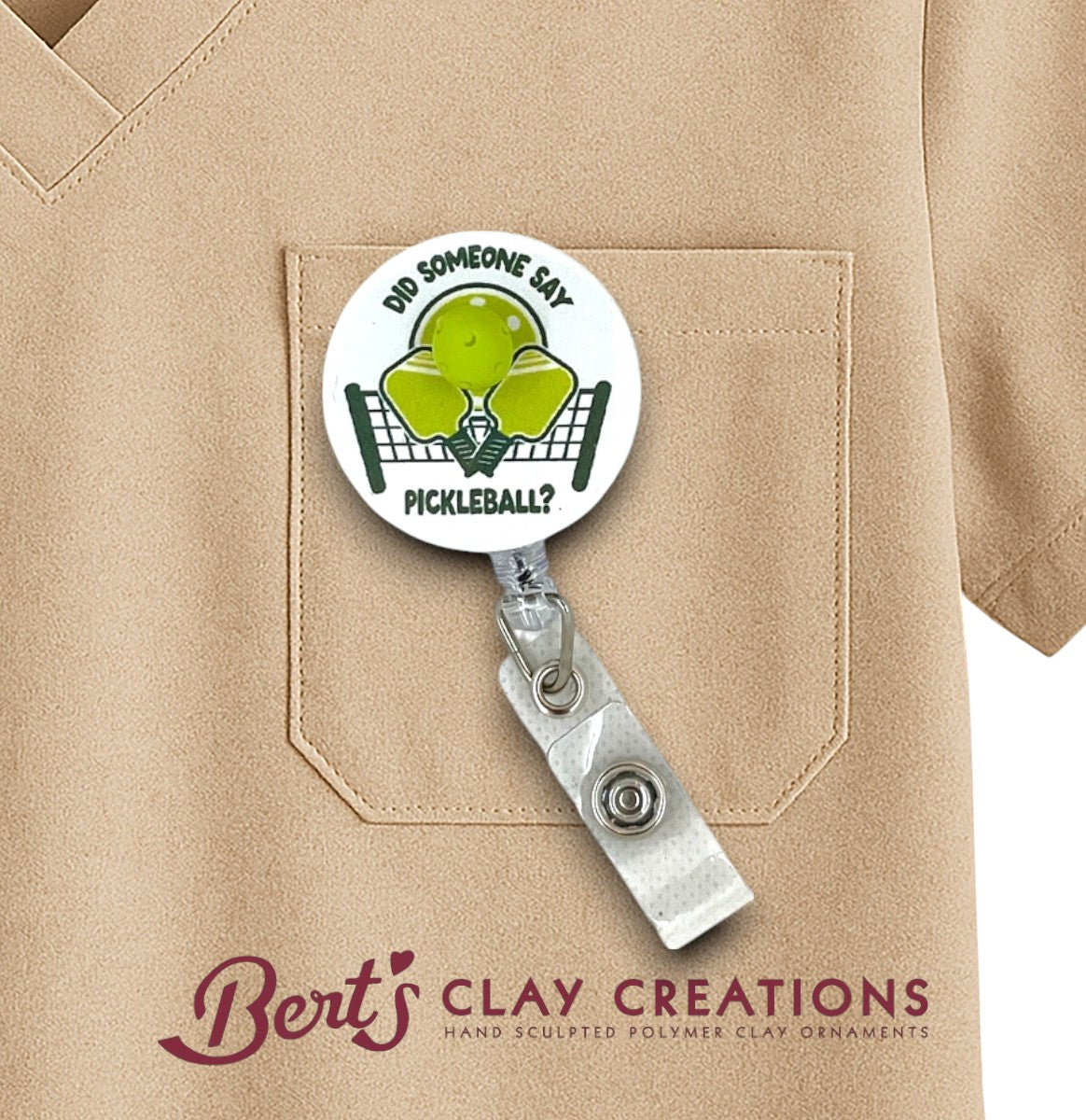 - Pickleball Badge Topper – Swappable Clay ID Clip – Funny Sports Gift – Handmade Work Accessory – Pickleball Lover Badge Flair