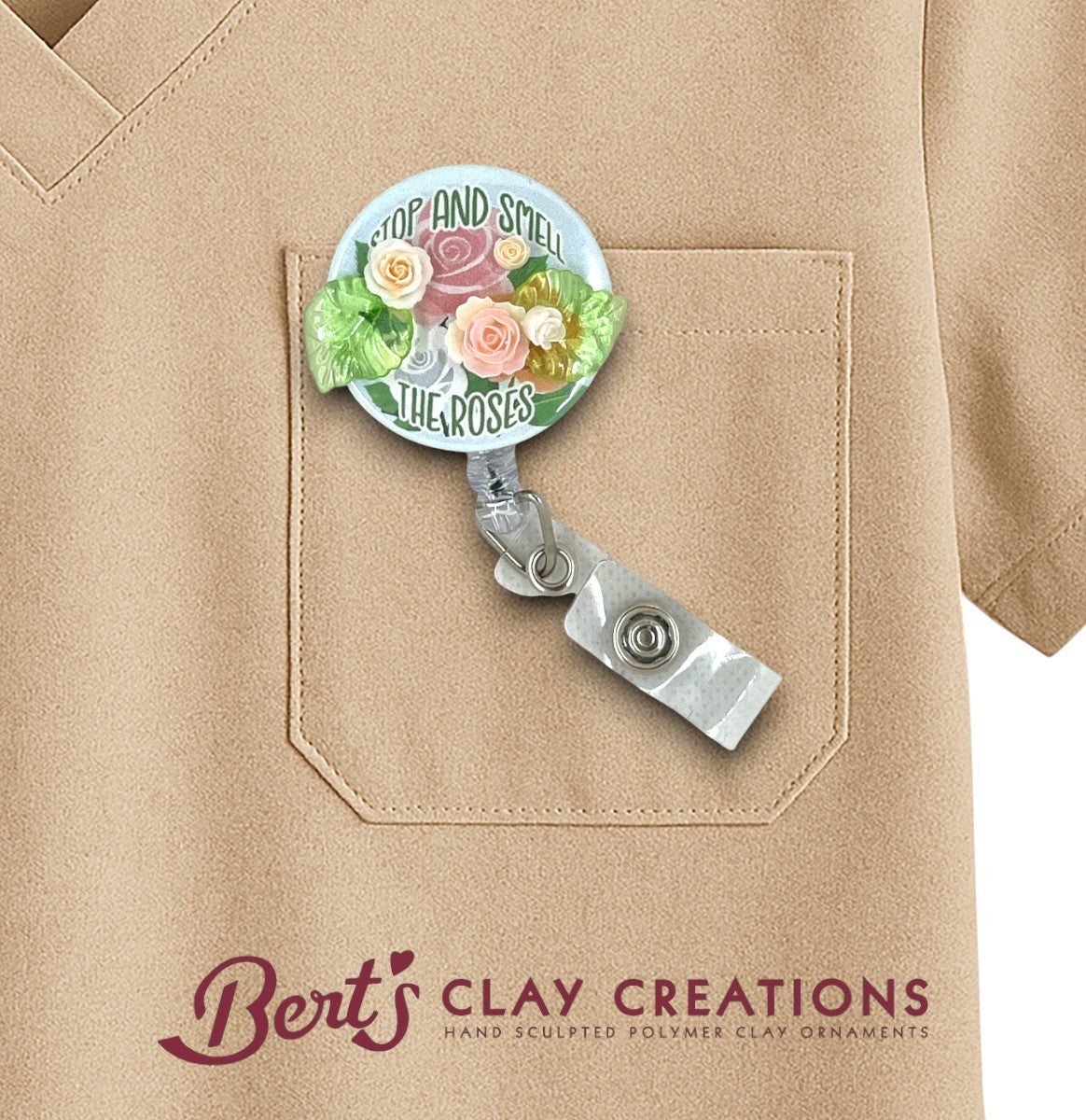 - Swappable Interchangeable Badge Reel Topper - Stop and Smell the Roses โ Swappable Floral ID Clip โ Nurse Badge, ID Holder, Teacher Gift